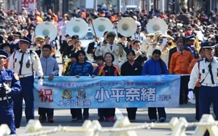 国際的スポーツ大会でメダルを獲得した選手の祝賀パレードで警備を行いました。 地元の誇りである選手を祝うために県内外から15,000人の方が集まりました。