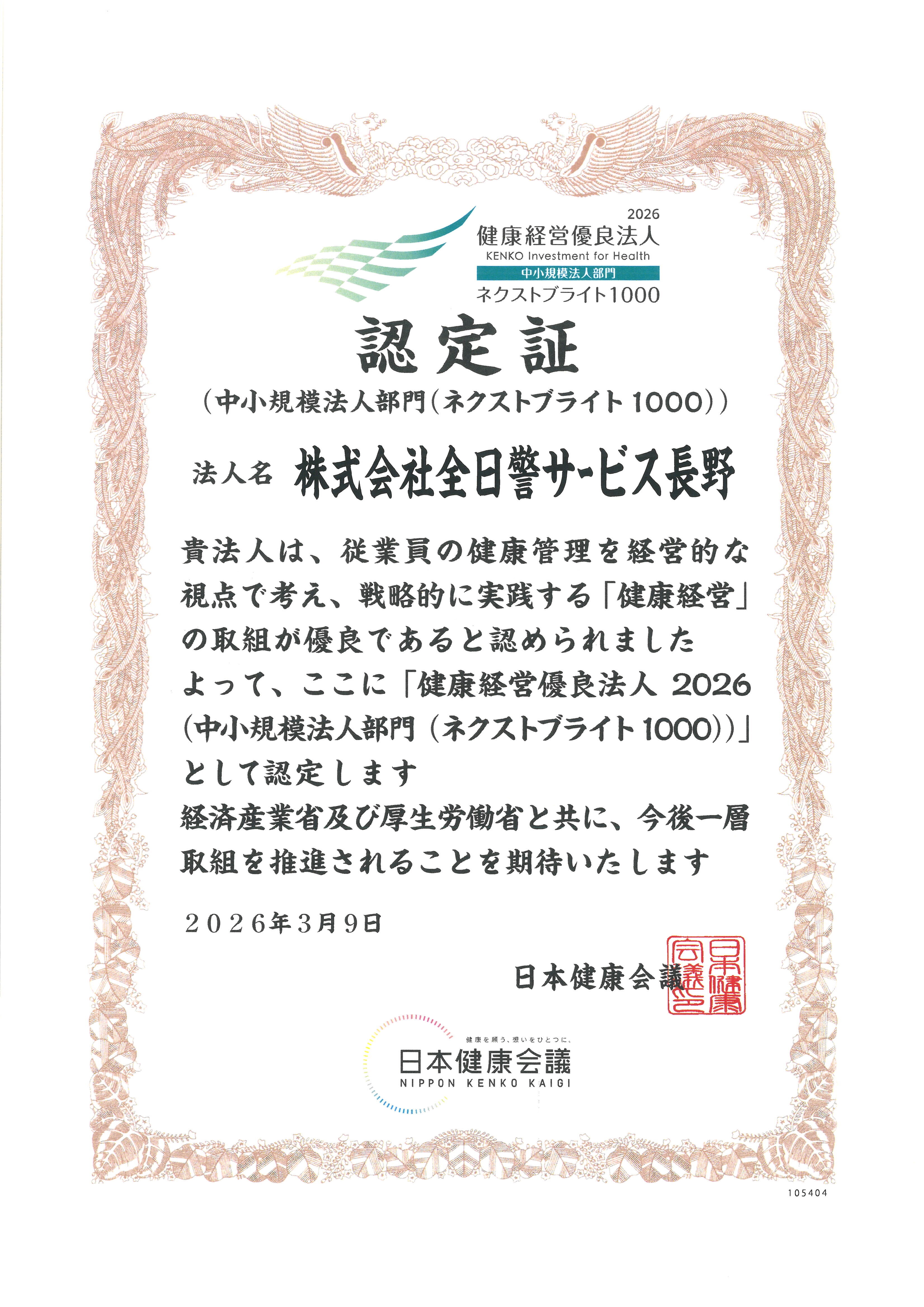 2026.03.09 サステナビリティ 健康経営優良法人2026 (中小企業法人部門)ネクストブライト1000の認定をされました 日本健康会議より「健康経営優良法人2026 (中小企業法人部門)ネクストブライト1000」の認定をいただきました。ネクストブライト1000とは、中小規模法人部門の認定法人のうち、ブライト500に次ぐ上位501~1500位の企業・法人に与えられる上位区分の名称で、特に優良な健康経営の取り組みを行う中小企業等を顕彰する制度です。 サステナビリティ一覧へ戻る