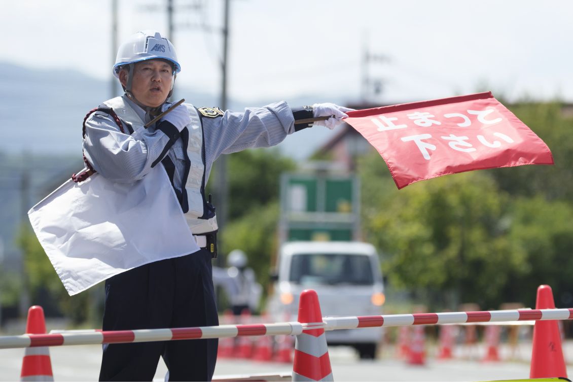 工事現場で歩行者や車両の通行を誘導する業務を担当しています。工事により道幅が狭くなったり通行が制限されたりする場所で、歩行者には安全な通路を示し、車両には一時停止や進行を合図や旗を使ってわかりやすく伝え、スムーズに通行できるよう誘導します。この業務は交通の流れを整え、事故を未然に防ぐために重要な仕事。現場の状況に応じて的確に対応できるよう、常に周囲に気を配ることを心がけています。週末は大型ショッピングセンターの駐車場の警備も行うなど、さまざまな現場を任されています。